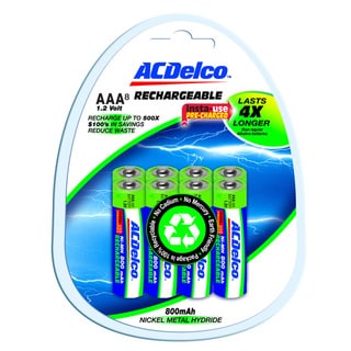 NiMH Rechargeable AAA Batteries are designed for high-tech, high-drain devices. Quick and easy to charge. Each lasts for approximately 1,000 charge/discharge cycles (four to five years of normal use). Particularly well-suited for devices requiring high-energy development over a short time. Batteries offer far higher power reserves than standard alkaline manganese batteries. Ideal for everything from digital cameras, portable cassette players, PDAs, handheld games, portable CD players to notebook computers. Durable rechargeable batteries do not contain cadmium.