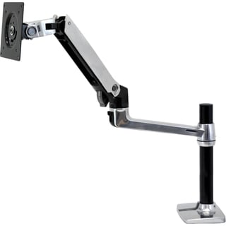 Ergotron LCD Desk Mount arm This desk mount arm is very sturdy and is well made. I recommend it to anyone wanting more desk space and a lot of flexibility in monitor positioning. I am using one with a 24 inch Dell LCD and the other with a 20 inch Dell LCD. Both are working great, are stable, and allow for a large range of positions and viewing angles. My only desire is to have a taller mounting pole included with the arm. I have the arm at its highest settings, and although it is fairly in the correct viewing height, I will still be placing an extra small piece of wood between the desk and mounting bracket to make it taller. I contacted Ergotron sales directly to inquire about purchasing their taller mounting pole separately, but have yet to hear back after 1 month.