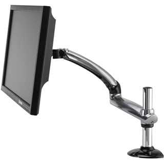 Single LCD desk mount frees up space and allows positioning of your monitor to reduce eye, back and neck strain. Polished aluminum construction offers greater durability and enhanced aesthetics. Constant Force lift technology provides fluid, one-touch adjustments. Cable management system routes cables under the arm and out of the way. Foldable arms retract into a compact position to allow you to tuck the mount in space-constrained areas. Snap-fit cap secures the interface of the arm to the extension for greater stability. Clamp and grommet mount base ensures greater stability of your monitor and arm. Plus, it includes theft-deterrent anchor holes to attach cable locks.