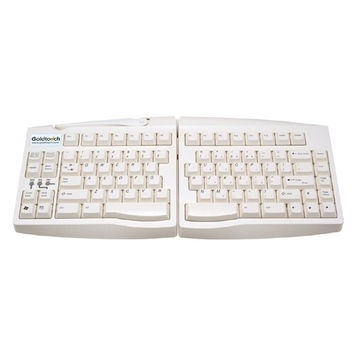 A proven design and years of longevity make the standard Goldtouch Adjustable Keyboard a leading recommendation among Risk Managers, Certified Professional Ergonomists, Physical Therapists and Occupational Therapists. Because a Goldtouch keyboard is designed to fit the range of body types, not just an average, the standard Goldtouch Adjustable Keyboard is the only keyboard designed to properly straighten the wrists and arms while aligning with the shoulders to achieve a neutral typing posture.