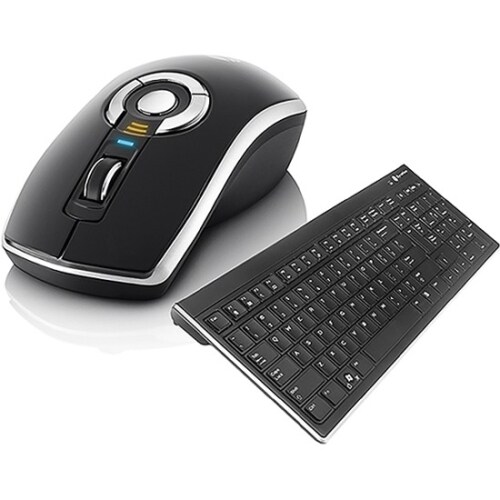 Join the motion revolution! The elegant and ergonomic Air Mouse Elite brings the intuitive simplicity of motion to your digital life. With the Air Mouse Elite, your natural hand movements drive more powerful presentation delivery, more immersive gameplay, more interactive classroom lectures and more convenient access to your digital entertainment. Use Gyration's powerful MotionTools software to customize your Air Mouse Experience. MotionTools recognizes your gestures and lets you turn your mouse into a highlighter, laser pointer or a pen. With a gentle swipe of your hand, control your favorite applications, activate presentation special effects and much more. The 104-key, full size, wireless keyboard operates up to 100 foot range with no line of sight restrictions.
