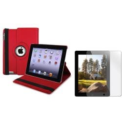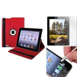 INSTEN Red Leather Swivel Tablet Case Cover/ Protector/ Stylus for Apple iPad 2/ 3/ New iPad/ 4