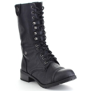 SaleTop Moda JEAN-1 Women's Block Heel Lace Up Combat Mid Calf Boots