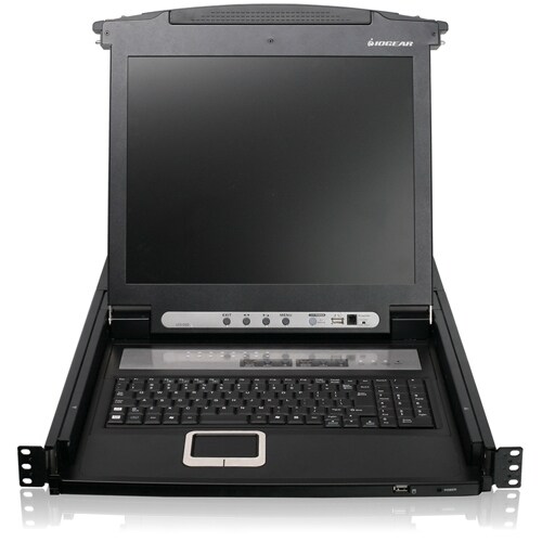 IOGEAR's GCL1816KITU is an integrated LCD console and 16 port KVM (keyboard, video, and mouse) switch with bundled USB KVM cables that offers secure access to 16 VGA, USB computers. It features a convenient rack mountable sliding / retractable 17" TFT LCD active matrix monitor and keyboard with built-in touchpad for a space-saving and streamlined integration. For added convenience it also supports an external USB mouse. An extra USB / PS/2 console port is provided on the rear panel to manage the LCD KVM switch from an external console (monitor, keyboard, and mouse). All this in a universal 1U rack mount space.