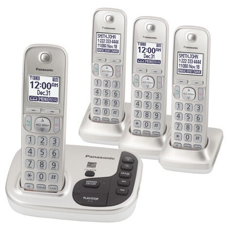 The Panasonic KX-TGD224N DECT 6.0 Plus Expandable Digital Cordless Answering System, with 4 handsets, can handle up to six handsets on the same line (additional handsets sold separately). This model takes on all of your day-to-day communication needs with an all-digital answering system, caller ID, call block, silent mode, and more. This Energy Star unit has Intelligent Eco mode which automatically lowers the power consumption when you're using the handset close to the base unit. DECT 6.0 Plus technology takes superb sound quality and outstanding range to a whole new level. And with the handset locator, you'll never lose track of your handset again.