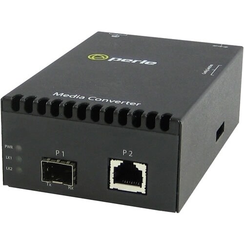 Perle S-10GT Media Converters transparently connect 10GBase-T Ethernet links over multimode or single mode fiber. Each 10GbE Media Converter comes with one RJ45 10GBase-T port and an empty slot for one SFP+ or XFP module.
