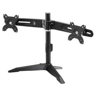 Nice stand, but has a minor inconvenience This stand was easy to setup and can support my two 24" monitors well. The only problem I had was setting the proper angle between the two monitors. The stand restricts the maximum angle at 10 degrees, which isn't quite enough for my setup.