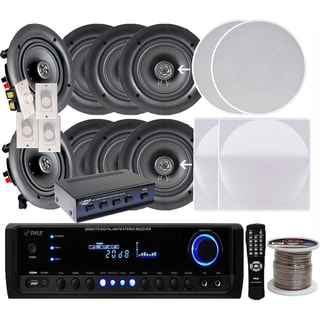 SalePyle KTHSP590S 4-channel 300-watt Receiver/ Amplifier with Speaker Selector and 4 Pair 150W 5.25-inch in-ceiling Speakers