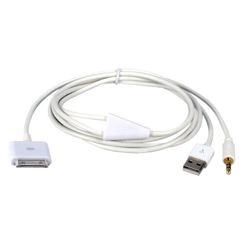 This combo cable allows you to charge your iPod, iPhone and iPad thru USB port while providing high-quality audio line out with its 3.5mm plug. Its perfect for car and other on-the-go applications.