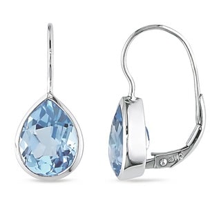 SaleMiadora 10k White Gold Blue Topaz Leverback Earrings