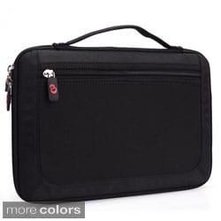 Designed in black with zesty red trim, this beautiful, premier-quality 10" tablet case features a luxurious exterior made of irresistibly plush micro-soft material and includes easy double-zippered access to your tablet, wrap-around handles for secure carrying, and offers both front and back zippered pockets for all of your accessories.- Heavy-Gauge Wrap-Around Handle Strap