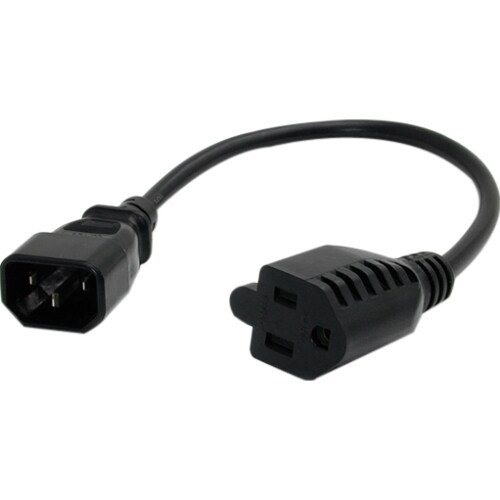 Expertly designed and constructed of high quality materials, this C14 to NEMA 5-15R cable features one hooded (male) power connector and one computer power (female) connector.