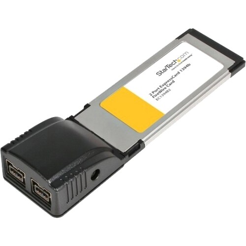 This 2 Port ExpressCard FireWire Adapter Card adds two 1394b FireWire ports to a laptop computer, providing a cost-effective way to add IEEE 1394A and IEEE 1394B FireWire devices even if the laptop doesn't have a built-in FireWire 400 or FireWire 800 port. Simply insert the IEEE 1394B FireWire 800 card (EC1394B2) into an ExpressCard slot, and you'll be able to connect a broad range of FireWire devices to your laptop, while relying on data transfer speeds of up to 800Mbps. Plus, the card is backward compatible with 1394a devices, so you can connect both FireWire 400 and 800 devices to the notebook, using the same adapter.