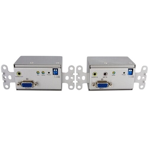 This VGA Wall Plate Cat5 Video with Audio Extender kit includes both transmitter and receiver units, allowing you to make out-of-the-way connections from a VGA video and audio source to a remote monitor location. The transmitter and receiver wall plates can be placed in a wall or ceiling gang for a cleaner, more professional VGA installation, supporting connection distances up to a maximum of 300m (950ft). Offering maximum versatility and convenience, the VGA wall plate kit is easy to install; simply wallmount the transmitter unit near the intended VGA source, then wallmount the receiver unit near the monitor/projector. The VGA transmitter and receiver units can then be linked using standard Cat5e or Cat6 cable to provide a high quality video and stereo audio extension while concealing the cable for a neatly placed installation. Both VGA transmitter and receiver units use a 12V DC terminal block connector behind the unit that offers a more secure and economical installation; using Cat5/Cat6 cable to extend the VGA signal offers a cost-effective solution based on the broad availability of networking cable which is far more flexible than VGA cable, not to mention less expensive. Unlike some video extension systems, our VGA extender wall plates also allow you to make use of an existing networking cable (Cat5, Cat6) infrastructure, eliminating the need to re-run cable in the event of an upgrade from VGA to another video standard, by simply swapping out the wall plates.