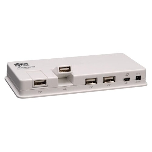 This 10-port USB 2.0 hub lets you connect up to 10 USB devices to a single USB port on your computer. Two swivel ports allow easy connection of MP3, flash drive and similar devices. This hub meets or exceeds USB 2.0 Specifications for Hi-Speed data transmission rates up to 480MB per second. It is perfect for both the mobile and desktop user. While the hub will function perfectly in virtually all cases without needing external power, a multi-voltage AC adapter (110/220V) is included in the event you are connecting power-hungry devices. Backwards compatibility lets it function with both USB 2.0 and USB 1.1 devices. Overcurrent protection safeguards connected equipment from overvoltages. Hub includes a 3' hub-to-computer USB Cable with "A" Male to 5-pin Mini-B male.