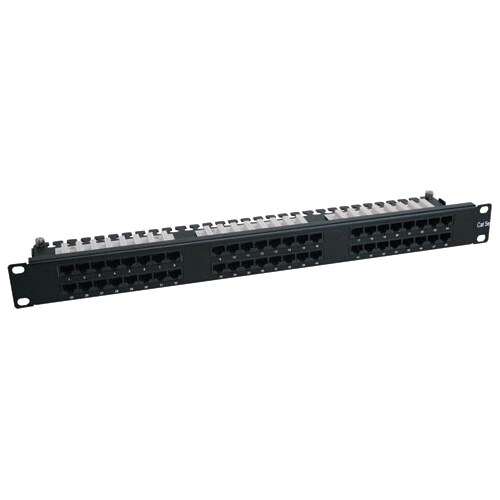 Tripp Lites 1U, 48port, Cat6 High Density Patch panel frees up valuable rack real estate by condensing a typical 2U 48 port patch panel into 1U of space. The unique design allows for easy punch down termination. Simply unscrew 4 slotted thumbscrews to remove the "upper deck" punch down array. Punch down the "lower deck" cables first, then replace the upper deck, and punch down upper array. Integrated wire loom keeps cabling tidy and easy to route.