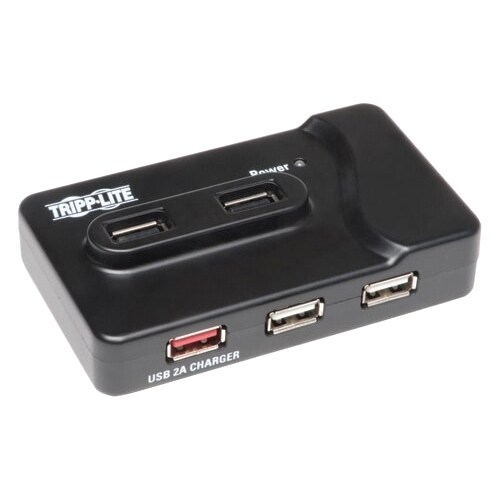 Tripp Lite U360-412, USB 3.0 Charging Hub, plugs into a computers USB3.0 port, and provides two, USB3.0 Super Speed peripheral ports, four USB2.0 Hi-Speed peripheral ports, and one charging port for charging tablets, such as iPad. Two of the USB 2.0 ports have convenient top plugging, for thumb drive access. Dedicated charging port supplies the extra amperage needed to charge tablets, such as iPads, which ordinary USB hubs do not have. Plug-and-Play...no software or drivers included or required. Automatically switches to the highest speed supported by the peripheral. Windows and MAC compatible.