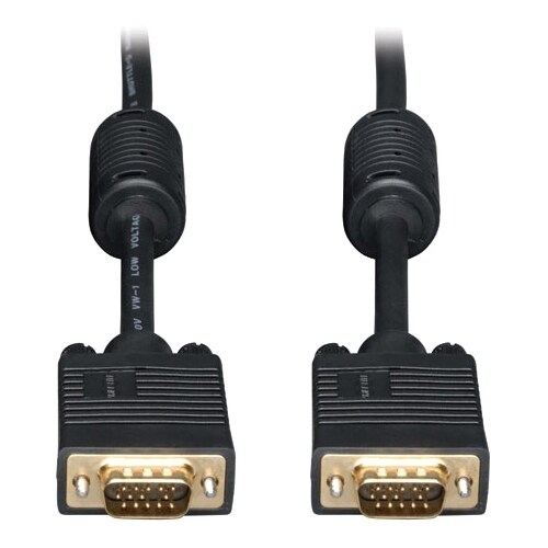 Tripp Lite's 3-foot SVGA/VGA monitor replacement cable is the gold standard in video cables. The mini-coax (RGB) and paired video wire construction delivers superior signal quality. Gold plated connectors and gold plated copper contacts ensure excellent conductivity. Double shielding (foil and braid) provides maximum EMI/RFI protection. Both high density DB15 male connectors are molded and have integral strain relief to ensure they last a long time. Tripp Lite warrants this product to be free from defects in materials and workmanship for life.