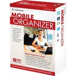 The Visioneer Mobile Organizer starts with a small portable scanner that weighs barely more than a 12 oz. bottle of water with dimensions similar to a rolled up magazine. Using Visioneer's most advanced OneTouch scanning technology, the Mobile Organizer can scan any small receipt, ID cards or document up to 8 1/2" x 14" long. It produces clear and sharp scans in color or black and white. This small, lightweight device is an essential piece of business gear for any traveler and it will save you from having to wait in line at the hotel business center. Bundled software: Visioneer OneTouch with Acuity, Nuance PaperPort, Nuance OmniPage, Visioneer DriverPLUS, TWAIN and WIA Drivers .