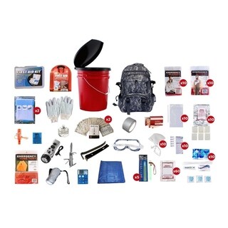 Keep yourself and a loved one safe in an emergency with this practical two-person emergency preparedness kit. This kit includes food, water, waterproof matches, solar blankets and more for a safe hideaway during the zombie apocalypse, or any other emergency situation.| Dimensions | 14 inches high x 13 inches wide x 15 inches deep |