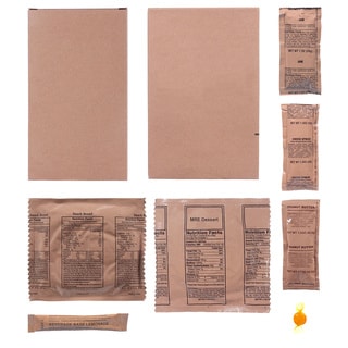 as pictured Nice package, lots of calories for the money. Water filter and fire starters are a nice bonus.