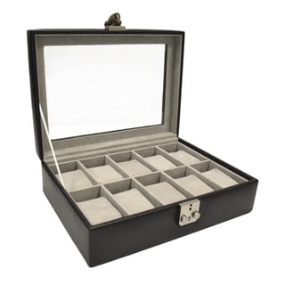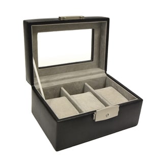 SaleBlack Leather Glass Top Watch Box