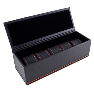 SaleCaddy Bay Collection Black/ Orange Carbon Fiber 5-slot Watch Case
