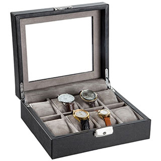 Great Watch Display Case I bought this case as a gift for my son-in-law. It exceeded both of our expectations. I monogrammed the glass top and now it sits proudly on his bedroom dresser. The workmanship was quality. The stitching was well done. The leather was good quality. And the price was right.