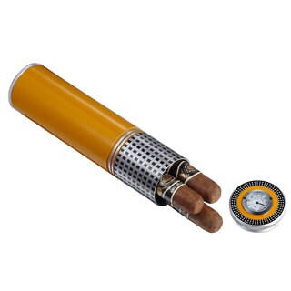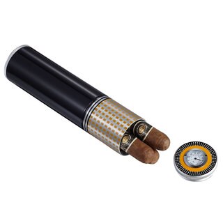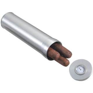 This gunmetal travel cigar humidor features a gauge which shows the level of moisture inside. This handy accessory is a must-have for any cigar enthusiast.- Quantity: One (1)