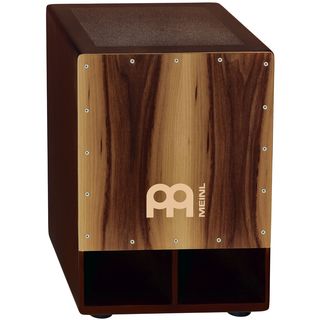Meinl string cajons feature strings that come together into two adjustable points to deliver a sizzle effect when striking the frontplate. This can be very useful in achieving a crisp sound that enhances bass notes and gives corner hits extra snap. Adjusting the tension of the strings opens up the sound options and varies the sensitivity of the cajon. Slightly tighter strings are great for playing soft finger rolls with ultra-sensitive response. The Makah Burl frontplate combined with the Rubber Wood resonating body come together to develop a deep, resonating bass tone that provides slight punches behind soft notes and deep swells behind harder playing, responding much like a kick drum. This instrument is ideal for softer acoustic gigs when a full drum kit cannot be used. Its portability as well as its musicality make it easy for musicians to pick up and play without hassle. Included with this cajon is a small wrench for string adjustments.| Caractéristiques | |