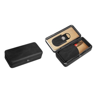 This set fits perfectly in a genuine leather case with a snap closure flap. It includes two stainless steel cylinder cigar holders that seal tightly to protect your cigar and a cigar cutter.| Caractéristiques | |