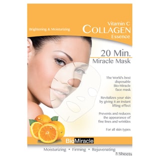 This Collagen Mask specifically increases elasticity, while effectively minimizing and reducing fine lines and wrinkles. The BioMiracle Mask is the world's best disposable face mask. In order to target specific needs of every user, the Bio-Miracle Mask is also available in Vitamin C, Rose, Aloe and Green Tea.In just 20 minutes, you can revitalize your face with a lifting effect delivered by collagen. In one use, skin is brighter and looks younger. This pack of five masks gives you enough treatments to always look your best. The mask may be applied once daily, or you can space out the applications as desired based on your personal preferences and skin condition.