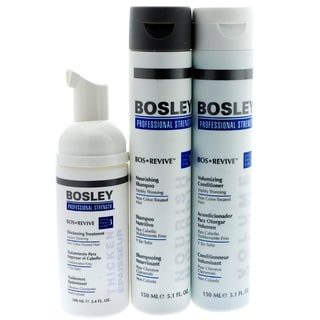 Bosley Bos Revive Thickening Treatment Volumizing Conditioner infuses hair with vitality and volume while it smoothes and adds shine. This conditioner delivers a thicker appearance to visibly thinning hair, and contains ColorKeeper Technology to extend the longevity of hair color.- Brand: Bosley