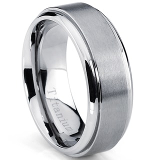 SaleOliveti Men's Brushed Titanium Beveled Edge Comfort Fit Band (8mm)