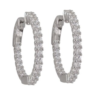 SaleSterling Silver Round Cubic Zirconia Inside-out Hoop Earrings