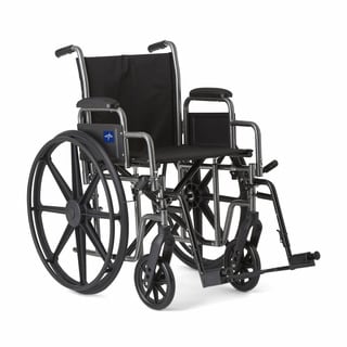 SaleMedline Excel K1 Basic Wheelchair with 18-inch Wide x 16-inch Deep Seat, Full Length Permanent Arms and Detachable Footrests