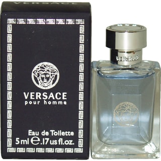A spritz of Versace Pour Homme, a sophisticated fragrance from luxury design house Gianni Versace, instantly transports you to a balmy summer day in the countryside. This fresh blend of exotic jasmine, spicy Moroccan cedar wood, fragrant musk, Kashmir wood and sweet azalea is a refined, clean scent inspired by nature. Housed in a sturdy glass flask adorned with an engraved silver medallion and a sleekly polished silver cap, this blue-tinted eau de toilette spray adds a touch of color and style to your dressing area.- Versace Pour Homme scent is created by the design house of Gianni Versace
