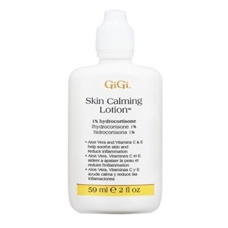 GiGi skin calming lotion is a product that soothes the skin following hair removal treatments, such as waxing. This professional lotion contains gentle, natural ingredients, such as vitamins E, C and aloe vera, that reduce inflammation, improving the feel of the skin and promotes healing. It also contains hydrocortisone that lowers the irritation that often occurs with waxing.| Dimensions | See Details |