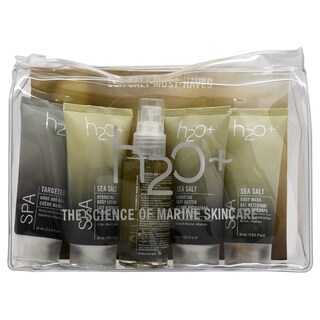 Sea Marine Revitalizing Shampoo and Collagen Conditioner fortify hair with marine collagen and provitamin B, to restore volume, resilience and softness. Lush Sea Marine Purifying Shower Cream is enriched with aloe to moisturize the skin while gently cleansing away impurities. Sea Marine Triple Butter Body Cream deeply nourishes and softens the skin with an emollient blend of shea, cocoa and mango butters. Award-winning hand cream intensely moisturizes hands and cuticles with shea butter, silk proteins and vitamin E. Sea Marine features notes of fresh eucalyptus and cool mint to awaken the senses and subtly scent the skin and hair. The exclusive H2O Plus beauty bag makes this set ready-to-give.| Dimensions | See description |