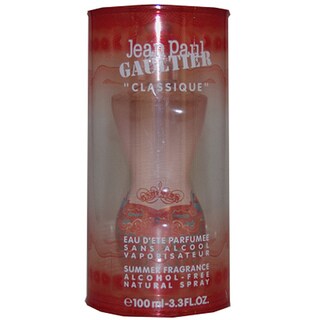 Entice the people around you with the mature scent of Jean Paul Gaultier Classique eau de toilette spray for women. The alluring aroma features hints of delicate notes such, as sweet vanilla and spicy amber, with a wood base tone that is sure to impress clients or that special someone.Give a gift to delight that special woman in your life. The 3.4-ounce Classique spray bottle is easy to store in a small handbag or purse when traveling or when you want a refreshing spritz during the day. This unforgettable gift is packaged in a feminine bottle that is sleek and modern, perfect for display on a vanity.
