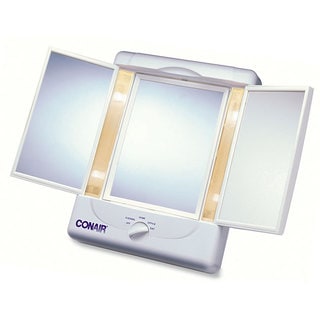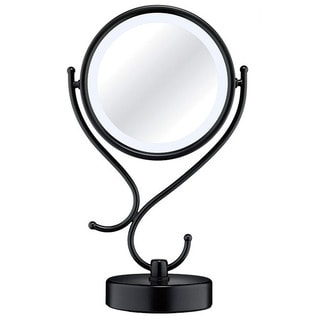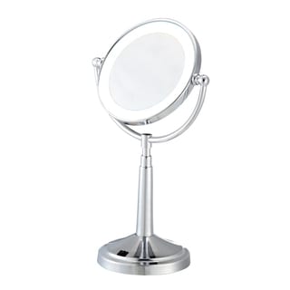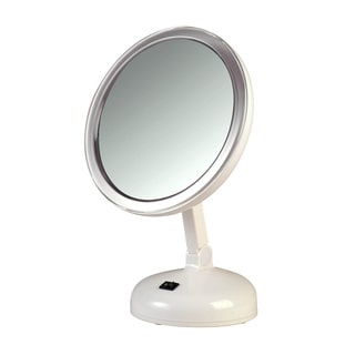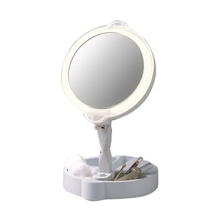 See the tiniest detail with this double-sided mirror. One side has a normal mirror and the other has a powerful 12x magnifying glass.This folding vanity mirror features 360-degree LED lighting that helps you see your face from every angle in even low-light conditions, and these bulbs never need replacement, making this mirror an economical option. Built-in storage compartments on the base provide room for tools used during facials, applicators and frequently used cosmetics.
