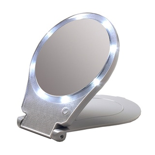 Great portable makeup mirror I really liked the lighted makeup mirror, and the magnification is great for seeing every last stray brow hair. Unfortunately, the first mirror I ordered did not light up, and when I called the number on the insert in the box, the woman was completely unhelpful and suggested I call the store I bought it from. Thankfully, Overstock's customer service was terrific, and sent a replacement out right away. The replacement works perfectly, and I love that the light runs on battery, so you can use it wherever you like without needing to be near an outlet.