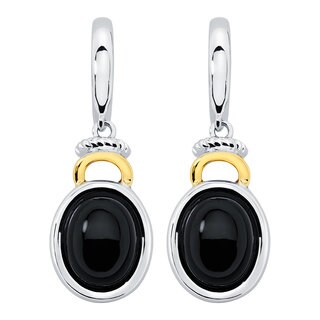 SaleBoston Bay Diamonds 18k Gold and Sterling Silver 7x9mm Cabochon Oval-cut Black Onyx Earrings