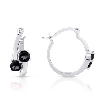 SaleDolce Giavonna Sterling Silver Black Spinel Hoop Earrings