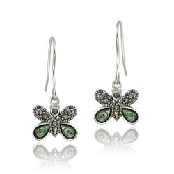 SaleGlitzy Rocks Sterling Silver Marcasite and Abalone Butterfly Dangle Earrings