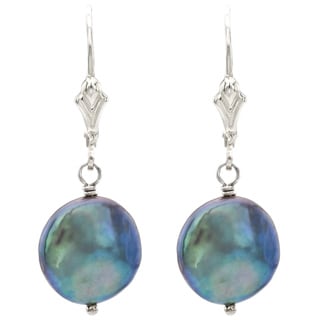 SaleDaVonna Silver Black FW Coin Pearl Earrings (9-11 mm)