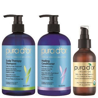 SalePura d'or Premium Organic Dandruff Shampoo, Conditioner and Argan Oil Set