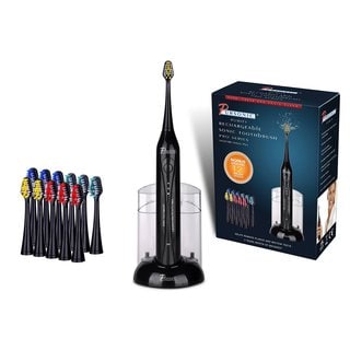 SalePursonic S450 Black Deluxe Sonic Toothbrush with 12 Brush Heads and UV Sanitizer