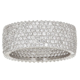SalePori 18k White Gold over Silver 7-row Micropave Cubic Zirconia Eternity Ring