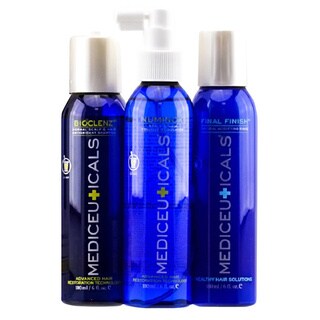 This Mediceuticals advanced hair restoration kit for women targets your dry scalp and supports follicular growth to thicken and strengthen your hair. Safe for chemically treated hair, these hair care products block the negative effects of DHT and deliver vital nutrients to the scalp.| Dimensions | See description |
